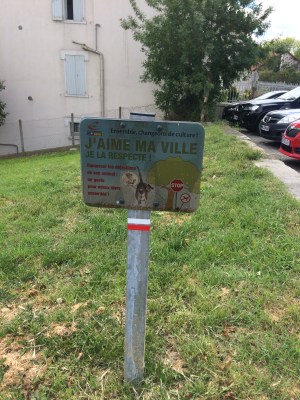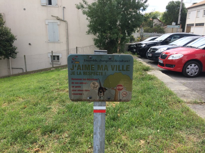 So why, in France, don’t people USE them? I don’t get it. I have spared you from any photos of the copious amounts of dog poo(p) that decorate the streets and pavements here. Instead, I have photographed the free bags and also the signs asking people to clear up after their dogs.