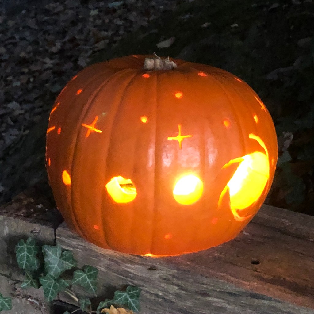 A beautifully carved pumpkin containing fairy lights – fantastic! Of course, Halloween will soon be upon us but since our sons have grown up, it’s not really had much impact for us.