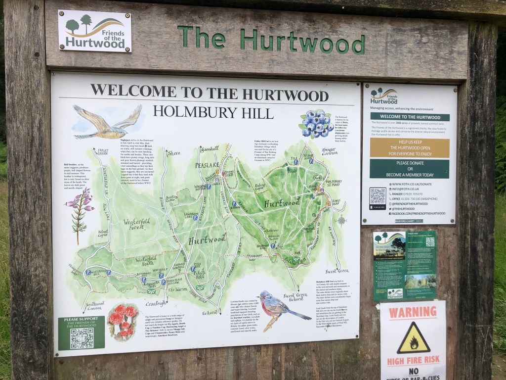Below is the first sign we came across before starting our ascent. The Hurtwood is over 2,000 acres of privately owned Common land. I’ve always been aware of the Hurtwood but hadn’t really delved deeply into its history – until now. The geology of the area is shallow, acidic, sandy soil on top of sandstone bedrock. This has resulted in a mix of deciduous and pine woodland and lowland heath. The heath is covered in gorse, bracken and heather. In 1086 (the Domesday Survey) the woodland was probably oak, birch and ash. In the late 1700s, the hardy Scots pine was introduced for commercial purposes. The soil was ideal for these trees. The Hurtwood was one of the first estates in England to give the public a ‘right to roam’ with ‘open access for air and exercise’.