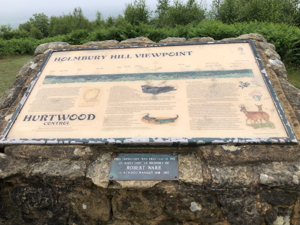We arrived at the viewpoint, the fourth highest in Surrey, only to see nothing! Any potential views were completely obliterated by low clouds and mist. Never mind! We had both seen the views before and, hopefully, will repeat the walk on a clear day.