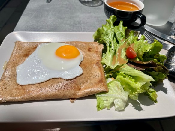 We opted for the menu which included a savoury Galette, a sweet crêpe, and a cup of dry cider. Delicious!