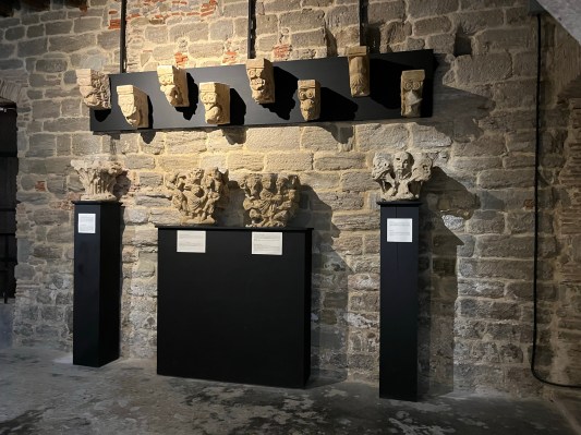 We took a self-guided tour of the Abbey which led us from the reception area into the monk’s refectory. This contained an exhibition dedicated to the Master of Cabestany. This was the name given to an anonymous sculptor who produced stone carvings in the second half of the 12th century. The carvings in the exhibition are reproductions but you can see the original carvings on the outside of the Abbey.