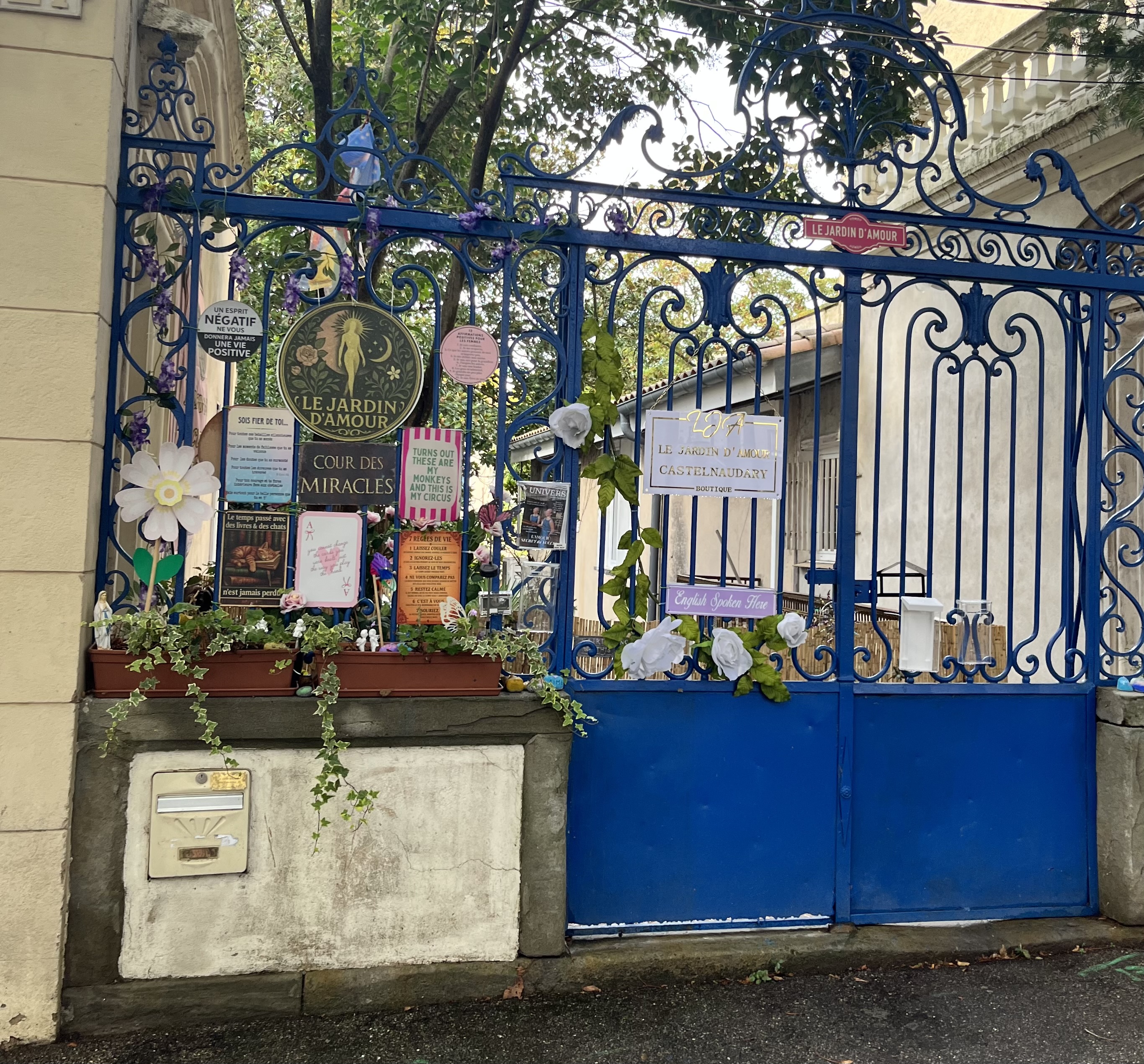 Castelnaudary has changed in the ten years we have been here. Some businesses have closed, others have opened. I have always been fascinated by these gates, which have gained some new signs. You might be able to spot one that says ‘Le jardin d’amour‘. This is the name of a new lifestyle boutique that offers workshops, tarot readings, and Reiki sessions. I will investigate in future!
